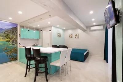 Студия с балконом и с красивым видом из окна