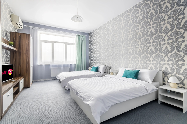 Апартаменты с 2 комнатами с балконом и с красивым видом из окна