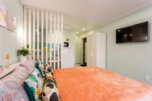 Студия с балконом и с красивым видом из окна