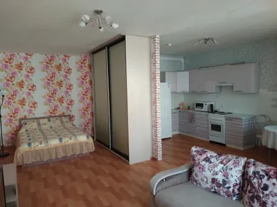 Студия с балконом и с красивым видом из окна
