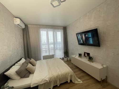 Студия с балконом и с красивым видом из окна
