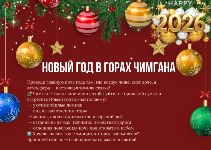 Ищете уютные гостиницы в Чимгане? На Туту вы сразу увидите свежие предложения — начните поиск и подберите лучшее для себя. На Туту представлено около 3 вариантов проживания — от экономных до премиальных. Оформление займет всего пару минут, а цена за ночь начинается от 4748 рублей. Все предложения обновляются ежедневно, поэтому вы видите только самые актуальные варианты. Хотите узнать точную стоимость? Просто укажите даты поездки и запустите поиск — система пересчитает предложения и покажет актуальные цены с учётом вашего периода. Сравнивайте удобства, фото и отзывы, чтобы выбрать именно то, что подойдет под ваше путешествие. Откройте для себя Чимгана с комфортом: выберите идеальное жилье и насладитесь отдыхом. Туту делает ваше путешествие простым и выгодным